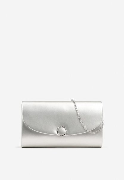Srebrna Torebka Kopertówka z Ozdobną Aplikacją i Dodatkowym Łańcuszkiem Idanella