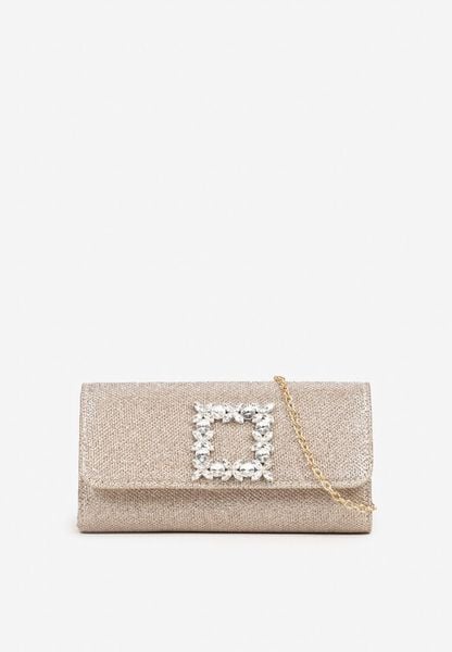 Szampańska Torebka Kopertówka z Biżuteryjnym Uchwytem i Dodatkowym Łańcuszkiem Milenessa
