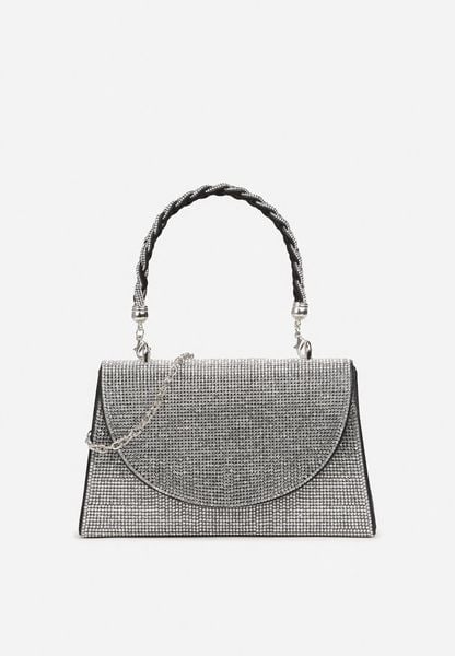 Czarno-Srebrna Torebka Kopertówka z Łańcuszkiem i Ozdobną Rączką z Cyrkoniami Zapinana na Magnes Jenatia