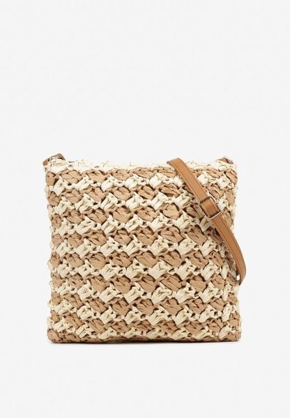 Beżowa Plażowa Torebka z Geometrycznym Wzorem Odilisse