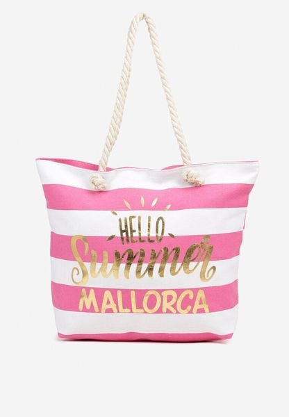 Różowa Torebka Ozdobiona Sznurkiem Napisami i Paskami Revandellea