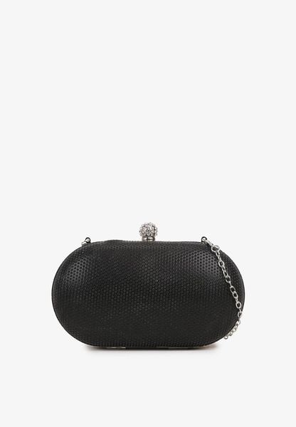 Czarna Torebka Kopertówka o Zaokrąglonym Kształcie z Cyrkoniami z Łańcuszkiem na Ramię Tiamavi