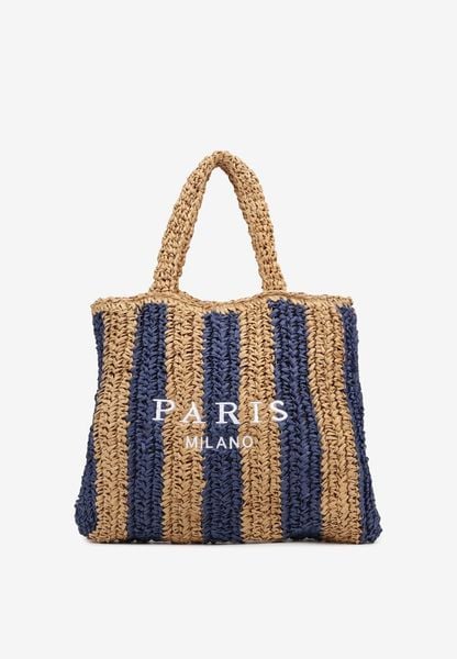 Granatowa Plażowa Torebka Shopperka Ozdobiona Napisem Navale
