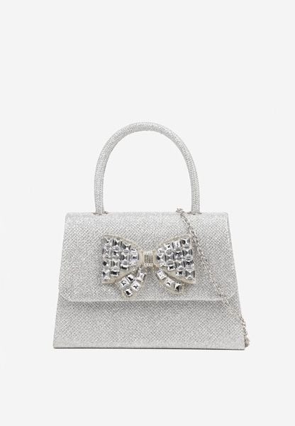 Srebrna Torebka Kopertówka z Cyrkoniową Kokardą Desslia