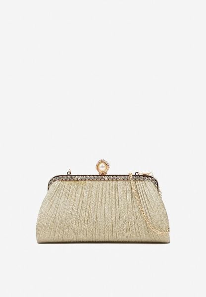 Złota Torebka Kopertówka Ozdobiona Perełką i Cyrkoniami Minisme