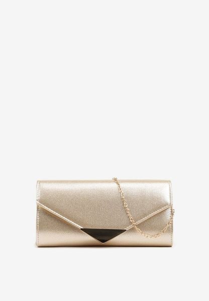 Złota Torebka Kopertówka z Dodatkowym Łańcuszkiem i Metalicznym Zapięciem Grireia