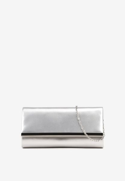 Srebrna Torebka Kopertówka Zdobiona Metalowym Detalem z Dodatkowym Łańcuszkiem Vorinna
