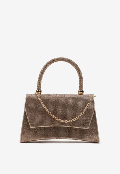 Złota Wieczorowa Torebka z Rączką Wykończona Cyrkoniami i Łańcuszkiem Fenagia