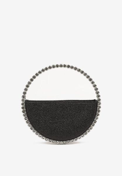 Czarna Geometryczna Koktajlowa Torebka z Brokatem i Cyrkoniami Fesarela