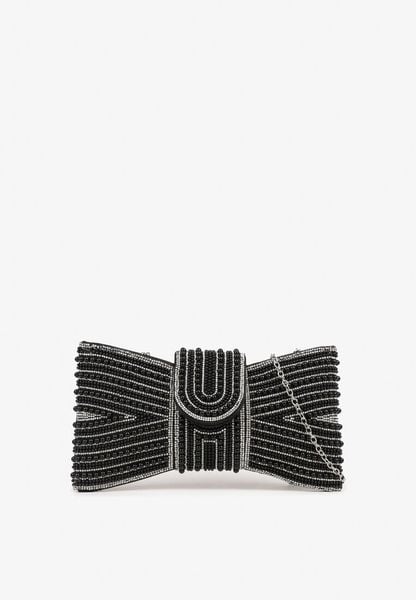 Czarna Wieczorowa Torebka Vices w Kształcie Kokardy z Odpinanym Łańcuszkiem Istte