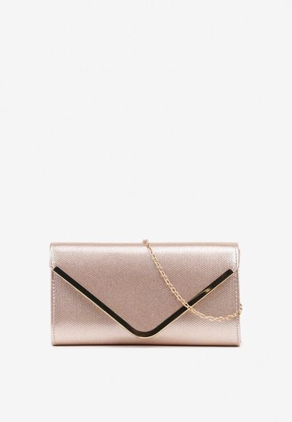 Szampańska Torebka Kopertówka z Łańcuszkiem Zdobiona Metaliczną Aplikacją Idalinna