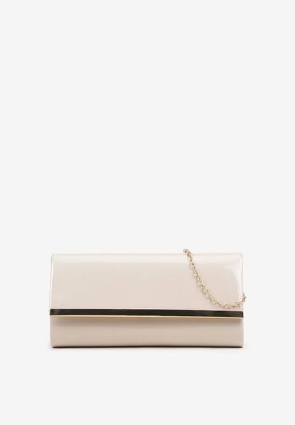 Beżowa Torebka Kopertówka z Dodatkowym Łańcuszkiem i Metalicznym Zdobieniem Galatina