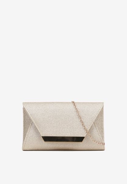 Szampańska Torebka Kopertówka z Metaliczną Aplikacją i Łańcuszkiem Idaritia