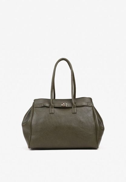 Ciemnozielona Torebka Shopper z Dwoma Rączkami Ozdobiona Paskiem z Klamrą Remisse