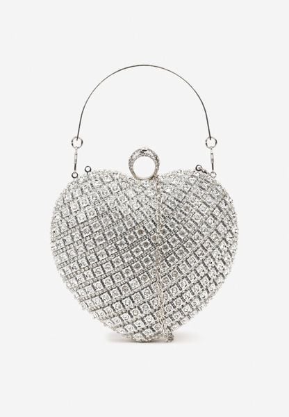 Srebrna Koktajlowa Torebka w Kształcie Serca z Cyrkoniami Deolave