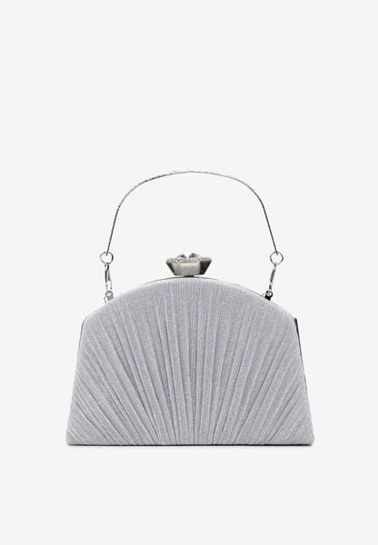 Srebrna Torebka Kopertówka z Ozdobną Rączką i Cyrkoniowym Zatrzaskiem Riverdi