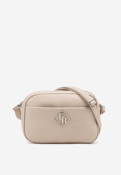 Ciemnobeżowa Torebka na Ramię z Metaliczną Ozdobą Naneloria