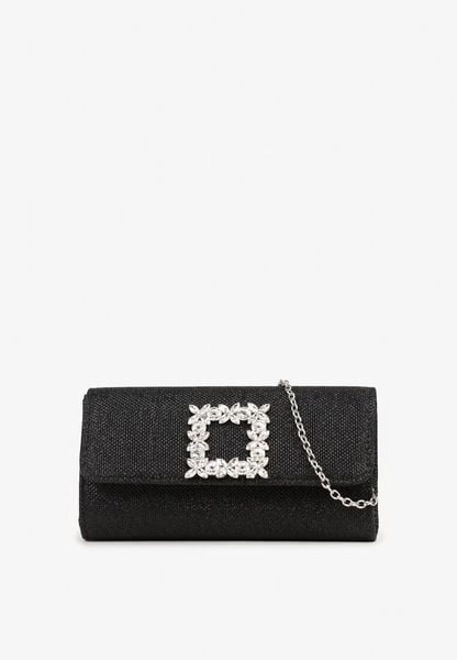Czarna Torebka Kopertówka z Biżuteryjną Klamrą i Odpinanym Łańcuszkiem Fesovella