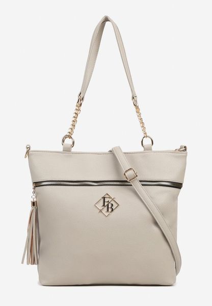 Ciemnobeżowa Torebka Shopperka z Ozdobnymi Rączkami Aplikacją i Dodatkowym Paskiem i Aplikajcą Idariona
