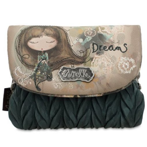 Portfel ANEKKE – 41709-016 to niezwykle kobiecy dodatek, który łączy w sobie bajkowy urok z elegancką formą i wyjątkowym designem. Górna klapka ozdobiona subtelną grafiką z postacią Anekke oraz haftowanymi detalami przenosi w świat marzeń, a miękka, plisowana dolna część w głębokim odcieniu zieleni nadaje mu unikalnego charakteru. Całość dopełniają aplikacje z błyszczącymi kamyczkami oraz […]