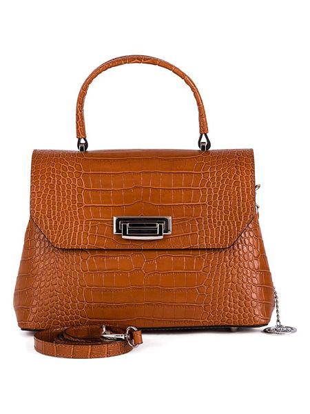 – materiał: skóra- powierzchnia: o fakturze skóry węża- uchwyty: 1- zapięcie: wtyk- kieszenie wewnętrzne: 1 kieszeń na zamek- wewnętrzne detale: komora główna dzielona zasuwaną kieszenią- detale: zawieszka- tekstylna podszewka: tak- wyprodukowano we Włoszech