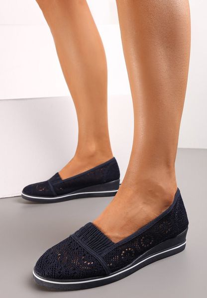 Granatowe Tenisówki z Ażurowej Siateczki na Niskiej Koturnie Nerurae