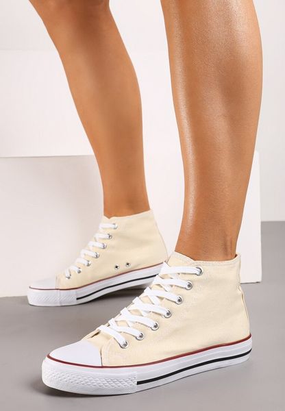 Jasnobeżowe Klasyczne Trampki za Kostkę ze Sznurowaniem Hulagia