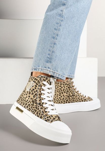 Panterkowe Trampki na Grubej Podeszwie z Cholewką za Kostkę z Brokatem Elaniella