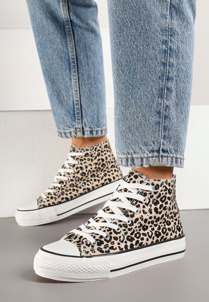 Panterkowe Trampki za Kostkę Ozdobione Tłoczeniem Jollevia