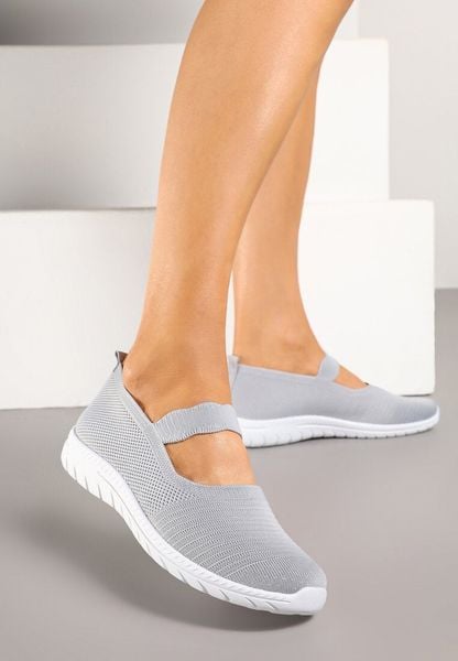 Szare Wsuwane Tenisówki z Ozdobnym Paskiem i Perforacją Zelsedi