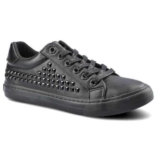 Trampki damskie Big Star, skóra ekologiczna z dekoracyjnymi ćwiekami po bokach klasycznym sznurowaniem oraz grubą płaską podeszwą, czarne, GG274157
