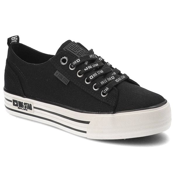 Trampki damskie Big Star, tekstylna cholewka sznurowanie platformowa podeszwa z tworzywa okrągły nosek, czarny, KK274013