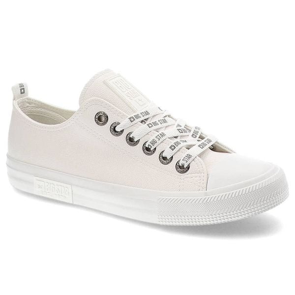 Trampki damskie Big Star, cholewka z materiału tekstylnego o płóciennej strukturze z klasycznym sznurowaniem i metalowymi przelotkam, biały, KK274105