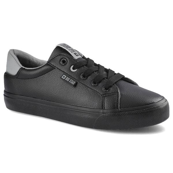 Trampki damskie Big Star, z cholewką ze skóry ekologicznej klasycznym sznurowaniem miękko wyściełanym wnętrzem, czarno-szare, EE274314