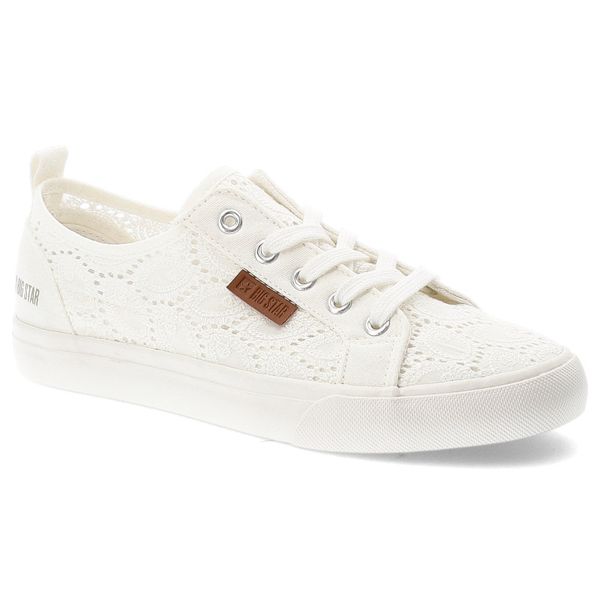 Trampki damskie Big Star, koronkowo-materiałowa sznurowana cholewka na klasycznym płaskim gumowym spodzie, białe, W274925