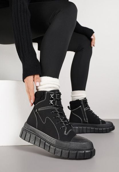 Czarne Botki Typu Trapery Vices na Grubej Tłoczonej Podeszwie Anerrive