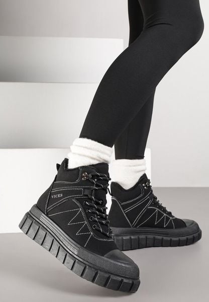 Czarne Botki Trapery Vices na Platformie z Tłoczeniem Ozdobione Przeszyciami Amirrise