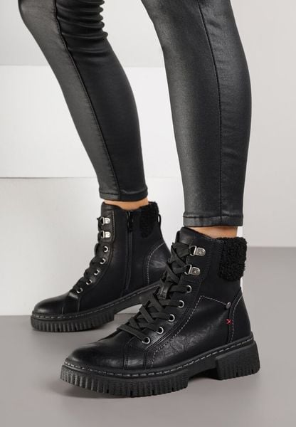 Czarne Sznurowane Trapery z Futerkiem Typu Baranek Raquella