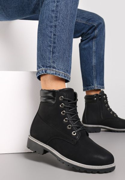 Czarne Ocieplane Traperki z Protektorem Martiel