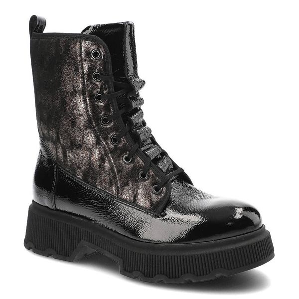 Trapery damskie Clasicco, naturalna skóra lakierowana z dodatkiem materiału filcowa wkładka ocieplane wnętrze, czarne, 2260-01AM-W2