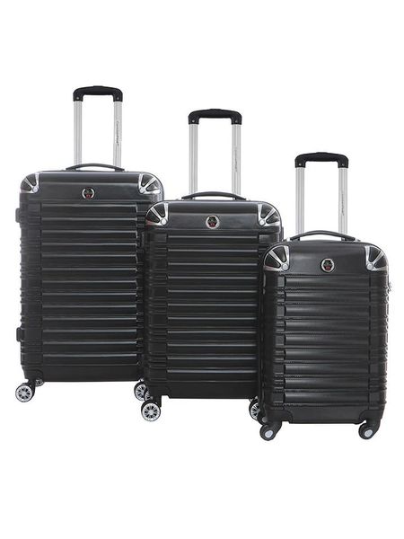 W zestawie:- 3 walizki w różnych rozmiarachWalizka:- materiał: ABS- uchwyty: 2- uchwyt: płynnie regulowany, teleskopowy- zapięcie: suwak- rodzaj kłódki: szyfrowa- pasy do przypinania zawartości: tak- kółka: 4, 360° kąt obracania